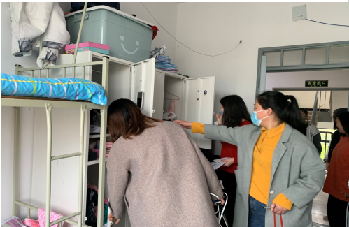 在走訪宿舍的過程中,著重檢查了洗手間墻壁、陽臺拐角、櫥柜上層縫隙等衛(wèi)生死角,對同學們的寢室衛(wèi)生方面的工作予以了肯定。同時,班主任老師們還仔細詢問了同學們有關宿舍環(huán)境、安全管理、衛(wèi)生條件等情況,叮囑同學們整潔衛(wèi)生的宿舍環(huán)境尤為重要,尤其是現(xiàn)在還處在疫情期間,務必要加強寢室衛(wèi)生的打掃,收拾好內務,勤通風。