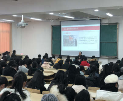 2020年12月22日下午15:10分開始,在弘毅樓508階梯教室,張龍枝副教授為學(xué)院20級(jí)、19級(jí)四個(gè)班近160名學(xué)生開展了題為“新零售的發(fā)展與模式創(chuàng)新”的講座。