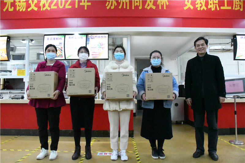 陽春三月,最美女神季。為了豐富女教職工的業(yè)余文化生活,3月12日,學校在一號食堂舉辦女神節(jié)系列活動——2021年“蘇州同發(fā)杯”女教職工廚藝大比拼活動。學校黨委書記、校長李虎親臨現(xiàn)場并宣布比賽正式開始,他還為參賽選手鼓舞助力。學校副校長、工會主席耿興華變身“美食鑒定官”。