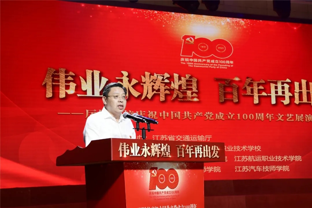 百年偉業(yè)、崢嶸歲月;紅色夢想,砥礪前行。在全國上下喜迎建黨100周年之際,在黨旗高高飄揚之時,來自全省交通運輸廳廳屬院校師生齊聚省無錫交校,慶祝中國共產(chǎn)黨成立100周年。6月25日,由江蘇省交通運輸廳主辦,江蘇省無錫交通高等職業(yè)技術(shù)學(xué)校承辦的“偉業(yè)永輝煌 百年再出發(fā)”廳屬院校慶祝中國共產(chǎn)黨成立100周年文藝展演在學(xué)校大禮堂成功舉行。江蘇省交通運輸廳副廳長金凌、江蘇省交通運輸廳政治處處長范健、江蘇省交通運輸廳副處級干部李進蒞臨演出現(xiàn)場。南通航運職業(yè)技術(shù)學(xué)院黨委書記袁衛(wèi)國、江蘇省交通技師學(xué)院黨委書記曾正德、江蘇汽車技師學(xué)院院長董剛、南京交通職業(yè)技術(shù)學(xué)院副院長王道峰、江蘇省無錫交通高等職業(yè)技術(shù)學(xué)校黨委書記、校長李虎,來自廳屬院校的700余名師生代表參加活動。