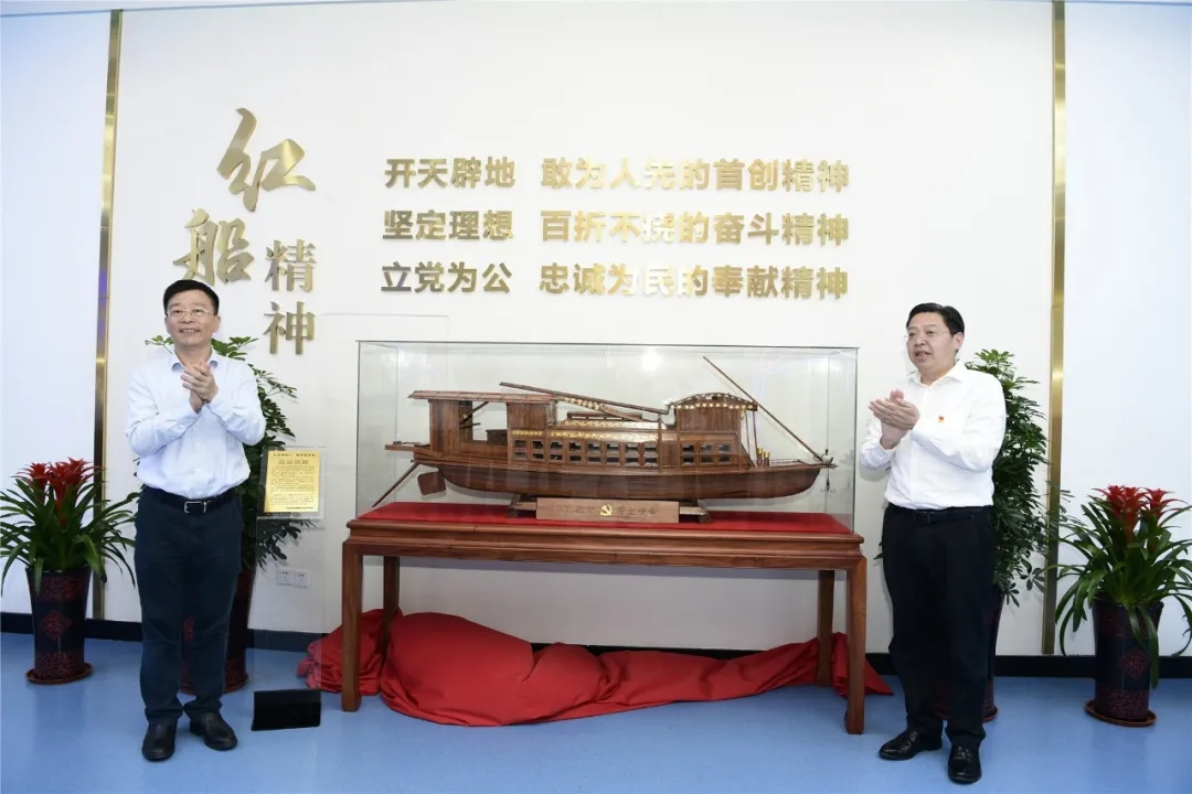 在全體領(lǐng)導(dǎo)和交校師生代表的見證下,金凌副廳長與李虎書記一起為黨的光輝歷程展、“紅船”模型、“十三五”發(fā)展成果展揭牌。