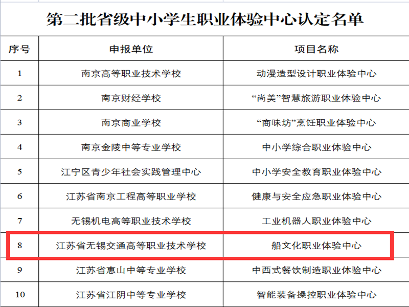 近日,江蘇省教育廳發(fā)布《省教育廳關(guān)于公布第二批省級中小學(xué)生職業(yè)體驗(yàn)中心認(rèn)定名單的通知》(蘇教職函〔2021〕38號),學(xué)?!按幕殬I(yè)體驗(yàn)中心”獲評省級中小學(xué)生職業(yè)體驗(yàn)中心。