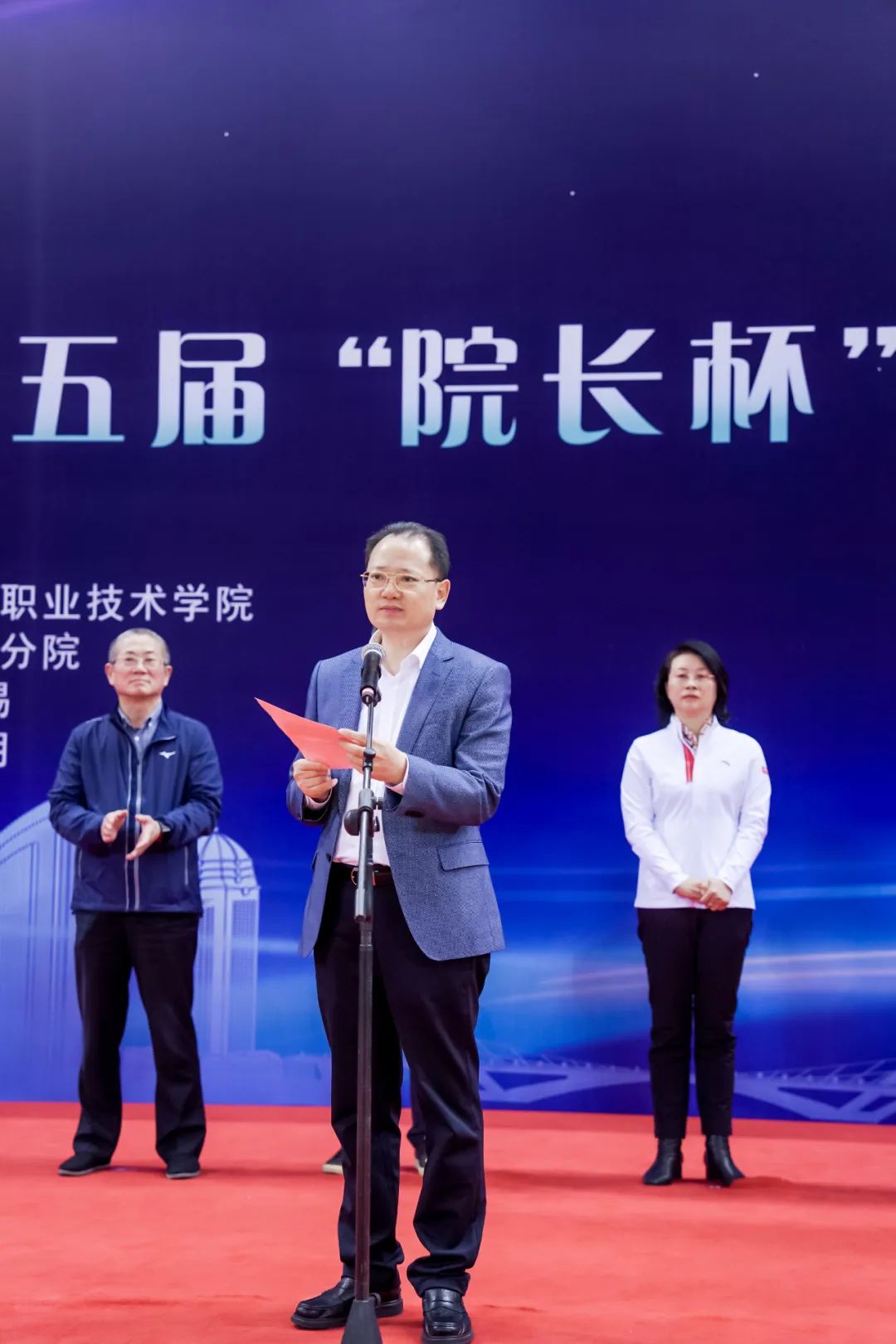 劉克勇代表大賽組委會對比賽的順利舉辦表示熱烈祝賀,對承辦單位的辛勤付出表示感謝。近年來學(xué)院上下在黨的全面領(lǐng)導(dǎo)下,事業(yè)發(fā)展穩(wěn)中有進(jìn),內(nèi)涵建設(shè)亮點(diǎn)紛呈,五年制高職取得長足發(fā)展。他希望本屆“院長杯”乒乓球比賽能夠充分展示各辦學(xué)單位領(lǐng)導(dǎo)班子的活力,展示各位校領(lǐng)導(dǎo)的健康體魄和體育運(yùn)動風(fēng)采,提高各辦學(xué)單位的凝聚力和向心力,助力各分院以更加飽滿的熱情推進(jìn)江蘇五年制高職高質(zhì)量發(fā)展。