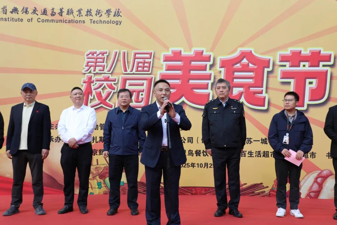 本次美食節(jié)以“食力全開、運(yùn)動(dòng)嗨翻”為主題,恰逢美食節(jié)與校運(yùn)動(dòng)會(huì)同時(shí)開展,旨在通過展示美食文化、運(yùn)動(dòng)會(huì)上運(yùn)動(dòng)健兒風(fēng)采,豐富校園文化生活。學(xué)校黨委書記李進(jìn),副校長范次猛出席開幕式。無錫市濱湖區(qū)市場監(jiān)督局榮巷分局副局長姚鶴頻,餓了么江蘇區(qū)域經(jīng)理盧軍,江蘇一城謇餐餐飲管理有限公司總經(jīng)理包海峰,南京輝玲緣餐飲管理有限公司總監(jiān)鄧義斌,北京百靈鳥餐飲管理有限公司副總經(jīng)理馬建棟,集百生活超市區(qū)域經(jīng)理鹿存飛,浙江虹盛食品有限公司區(qū)域經(jīng)理劉炯瑋參加了開幕式。