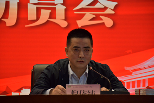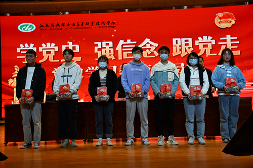 信息管理學(xué)院團總支負責(zé)人代表基層團組織作表態(tài)發(fā)言。與會領(lǐng)導(dǎo)向各學(xué)院團員代表贈送《寫給青少年的黨史》一書。