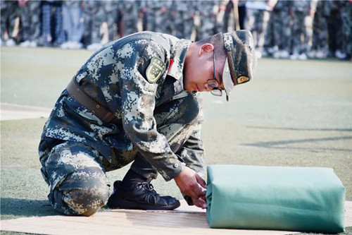 經(jīng)過(guò)幾天緊張的模擬訓(xùn)練,學(xué)生們都躍躍欲試,摩拳擦掌,一展風(fēng)采。100名新生有序地來(lái)到操場(chǎng),進(jìn)行一場(chǎng)疊被子技能大比拼,伴隨著口令,他們立即進(jìn)入狀態(tài),迅速蹲下,鋪平、壓實(shí)、翻折、摳角、捏線,熟練地疊起被子,有的還以尺子予以輔助。