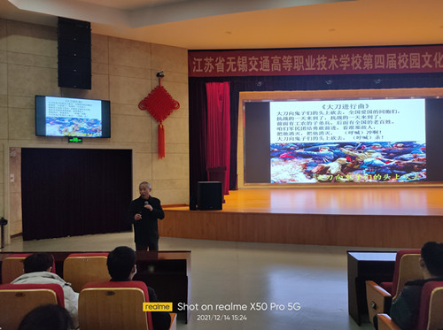 為教育引導(dǎo)團(tuán)學(xué)干部銘記歷史,振奮民族精神,加強(qiáng)青年學(xué)生的愛國主義教育,12月14日下午,學(xué)校邀請了無錫市關(guān)工委報告團(tuán)蔣川海老師,在學(xué)校禮堂面向團(tuán)學(xué)干部開展了“銘記歷史 開創(chuàng)未來”的主題講座,全體在校班級班團(tuán)干部、學(xué)生會干部和各社團(tuán)負(fù)責(zé)人共200余人參加了此次活動。