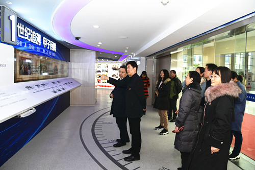 簽約儀式結(jié)束后,校黨委書記、校長(zhǎng)李虎帶領(lǐng)周軍偉書記一行參觀了學(xué)校校史館、江蘇省交通運(yùn)輸行業(yè)船文化中心、物聯(lián)網(wǎng)實(shí)訓(xùn)中心、工業(yè)機(jī)器人實(shí)訓(xùn)基地、校園書店、職工之家等,無(wú)錫市精神衛(wèi)生中心一行對(duì)學(xué)校的辦學(xué)成果表示高度認(rèn)可。