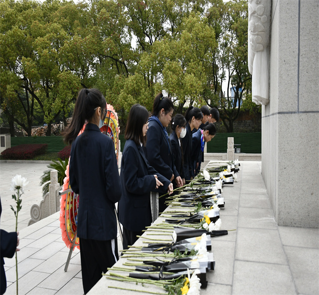 魂魄托日月,肝膽映河山。師生們懷著崇敬的心情來(lái)到無(wú)錫市革命烈士陵園,走過(guò)百米甬道,在“為國(guó)犧牲人民英雄紀(jì)念塔”前的金山石廣場(chǎng)列隊(duì)肅立,向紀(jì)念塔敬獻(xiàn)花圈,向英烈致以最深切的緬懷和最崇高的敬意。隨后,全體默哀,向千千萬(wàn)萬(wàn)為國(guó)捐軀的英雄兒女表示深切哀悼。莊嚴(yán)肅穆的儀式寄托著延綿不絕的哀思之情,也昭示著慨然前行的奮發(fā)之志。