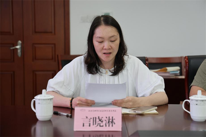 資助工作人員代表言曉淋老師發(fā)言,她介紹了獎助學(xué)金的評選過程,表示資助是一項有溫度的工作,在幫助學(xué)生申請獎助的過程中也收獲了很多幸福。