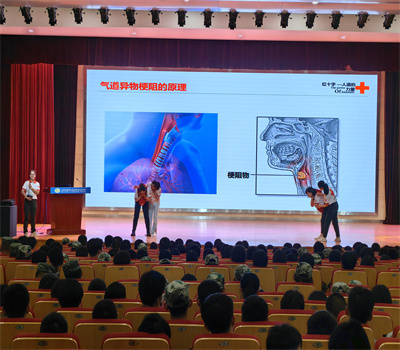 為進(jìn)一步提高學(xué)生安全防范意識(shí)以及應(yīng)對(duì)突發(fā)事件的自救互救能力,同時(shí)豐富校園軍訓(xùn)活動(dòng)內(nèi)容,9月22日下午,學(xué)校邀請(qǐng)無錫市濱湖區(qū)紅十字會(huì)救護(hù)師走進(jìn)學(xué)校開展應(yīng)急救護(hù)普及培訓(xùn),學(xué)校2000余名新生參加了培訓(xùn)。