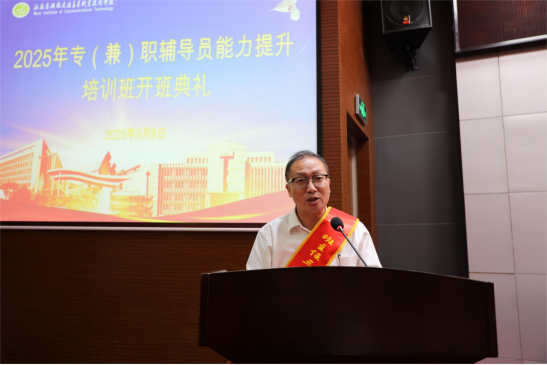 為全面提升學(xué)生工作隊伍的業(yè)務(wù)能力和綜合素養(yǎng),幫助專(兼)職輔導(dǎo)員更好地適應(yīng)新時代學(xué)生工作的新要求,9月8日至9日,學(xué)校成功舉辦了2025年專(兼)職輔導(dǎo)員能力提升培訓(xùn)班。學(xué)校黨委委員、副校長吳雪琴出席開班典禮,各二級學(xué)院分管學(xué)生工作的領(lǐng)導(dǎo)、學(xué)工辦主任、學(xué)工干事、2025級新生班專(兼)職輔導(dǎo)員80余人參訓(xùn)。開班典禮由學(xué)生工作處處長、團委書記王光祥主持。