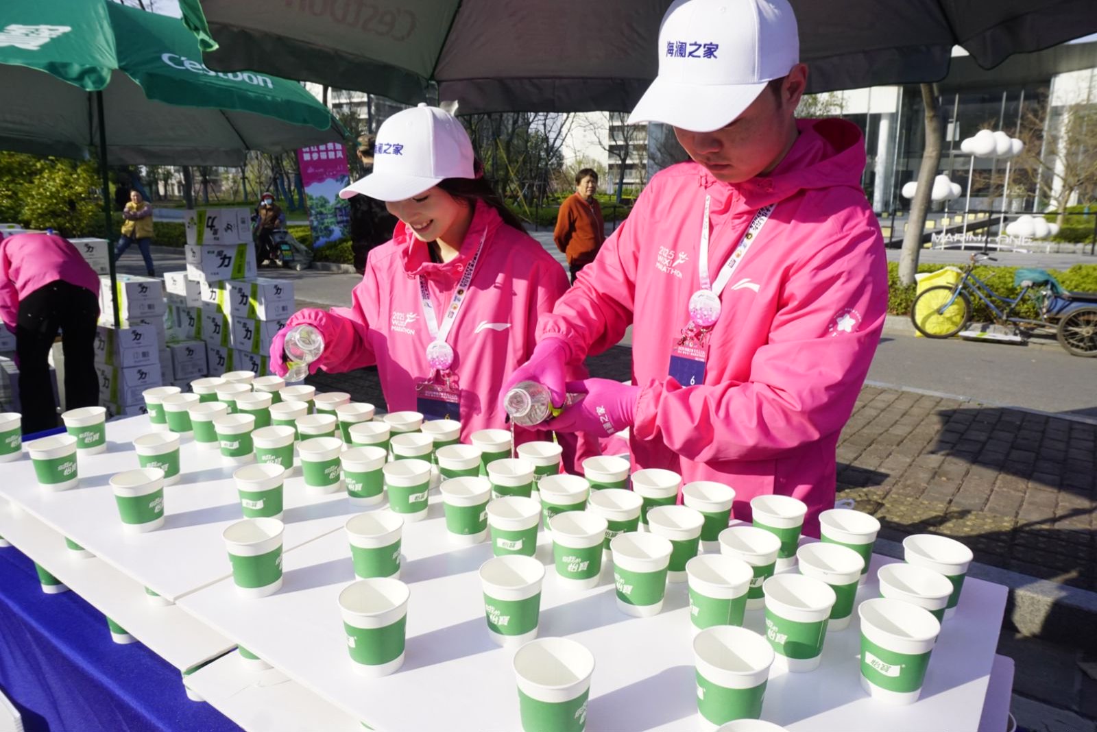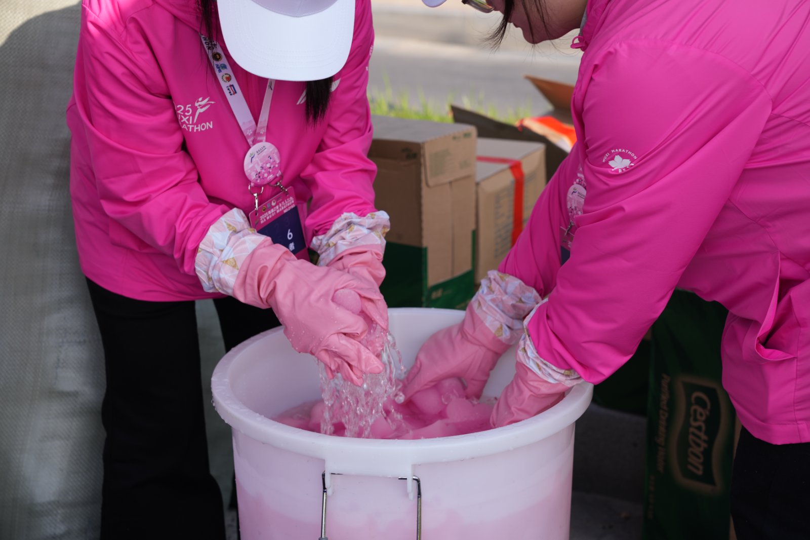 3月23日清晨6點(diǎn),當(dāng)城市還未完全“蘇醒”,停在無錫交校門口的大巴車外,已聚集了一群身著“櫻花粉”的志愿者。420余名馬拉松志愿者整裝待發(fā),即將前往無錫馬拉松保障點(diǎn)位。