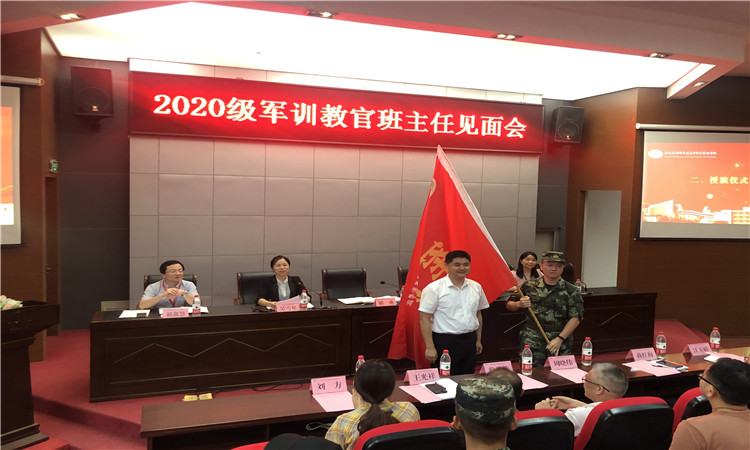 見面會上首先由馮處長宣讀了2020級新生班主任和教官名單,讀到名字的教官和班主任起立互相見面認(rèn)識。會議的第二項議程由邢校長為承訓(xùn)軍訓(xùn)團授旗。趙大隊長代表承訓(xùn)教官做出表態(tài),一定恪盡職守,確保安全,切實做好今年軍訓(xùn)工作。