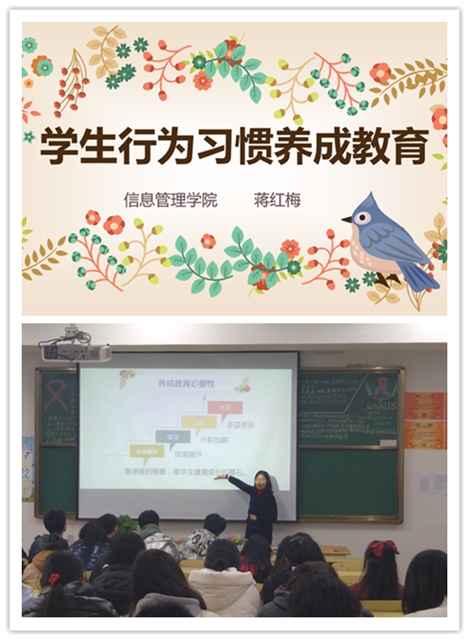 為培養(yǎng)學(xué)生良好行為習(xí)慣,共建優(yōu)良校風(fēng),促使學(xué)生健康人格的發(fā)展。信息管理學(xué)院于2020年12月9日下午14點(diǎn)30分,在學(xué)校弘毅樓504教室開(kāi)展“學(xué)生行為習(xí)慣養(yǎng)成主題”講座。信息管理學(xué)院2020級(jí)新生代表一百余人參加此次講座,學(xué)院副院長(zhǎng)蔣紅梅老師擔(dān)任授課教師。