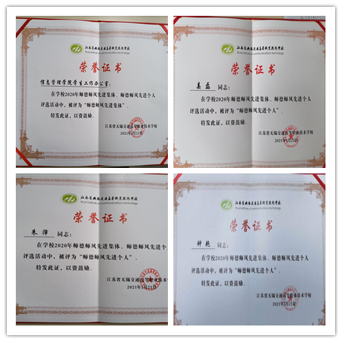 1月24日,學(xué)校在大禮堂召開2020年度總結(jié)表彰大會。學(xué)校副校長邢勇宣讀了《關(guān)于表彰學(xué)校2020年師德師風(fēng)先進(jìn)集體、師德師風(fēng)先進(jìn)個(gè)人的決定》。信息管理學(xué)院學(xué)工辦獲“師德師風(fēng)先進(jìn)集體”榮譽(yù)稱號,姜磊、鐘艷、朱沛三位老師獲“師德師風(fēng)先進(jìn)個(gè)人”榮譽(yù)稱號。