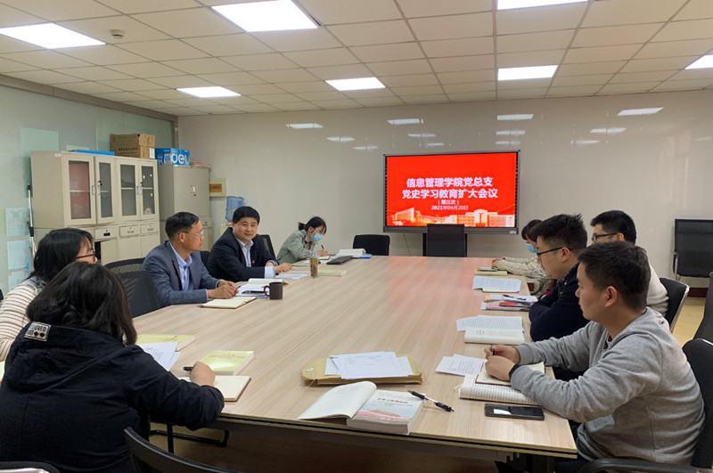 “欲知大道,必先為史”。今年是中國共產(chǎn)黨百年華誕的重大時刻,也是“兩個一百年”奮斗目標歷史交匯的關(guān)鍵節(jié)點,開展黨史學(xué)習(xí)教育正當其時十分必要。4月20日下午,信息管理學(xué)院黨總支在黨員活動室召開黨史學(xué)習(xí)第三次擴大會議,學(xué)院全體教職工參會,會議由院長鄭智飛主持。
