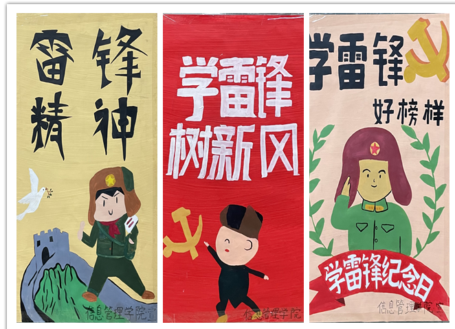 為進一步弘揚“奉獻、友愛、互助、進步”的志愿服務(wù)精神,激勵青少年健康成長。2023年3月1日,信息管理學院組織學生共同繪制“學雷鋒”主題海報。