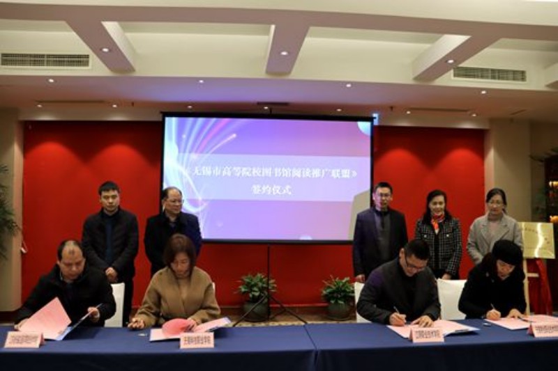 2月28日下午,無錫市高等院校圖書館閱讀推廣聯(lián)盟成立大會在無錫君來湖濱飯店召開,我校圖書館館長李小平帶領(lǐng)館員顏笑宣參加簽約揭牌活動,標(biāo)志我校圖書館正式成為無錫市高等院校圖書館閱讀推廣聯(lián)盟成員。