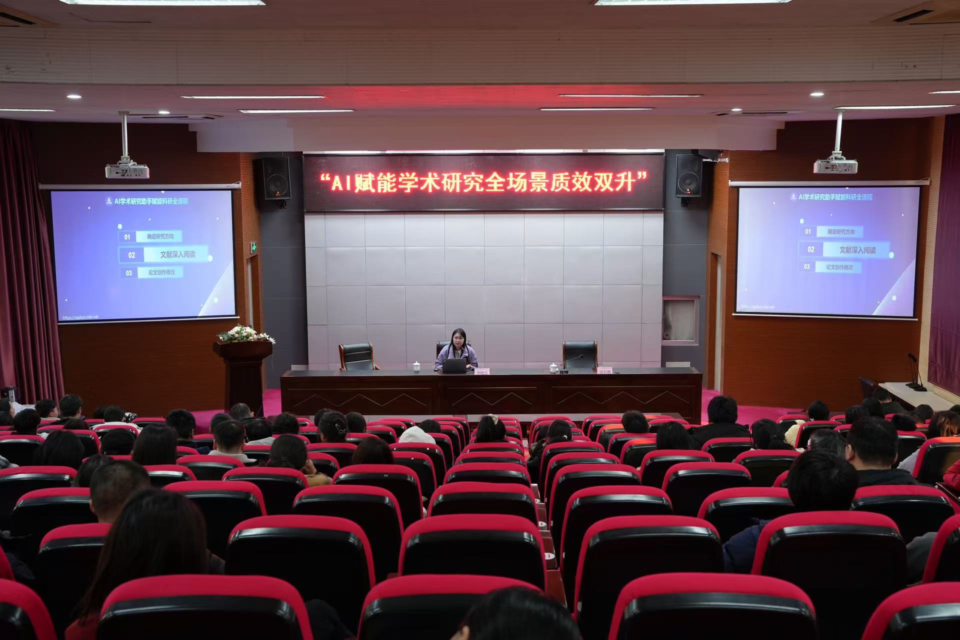為響應新時代學術挑戰(zhàn),提升教師的教科研效率與質量,拓展學生對人工智能(AI)的認識,我校教務處聯合科研處和圖文信息中心,于12月18日在學術報告廳舉辦了“AI賦能學術研究全場景質效雙升”專題講座。講座邀請中國知網資深培訓講師李曉慧女士主講,教務處副處長唐春剛主持。