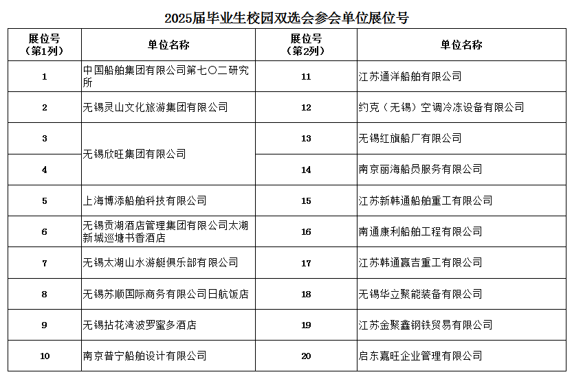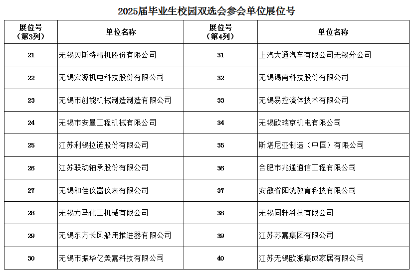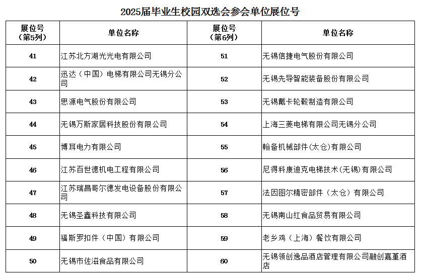 五、2025屆畢業(yè)生校園雙選會用人單位展位號